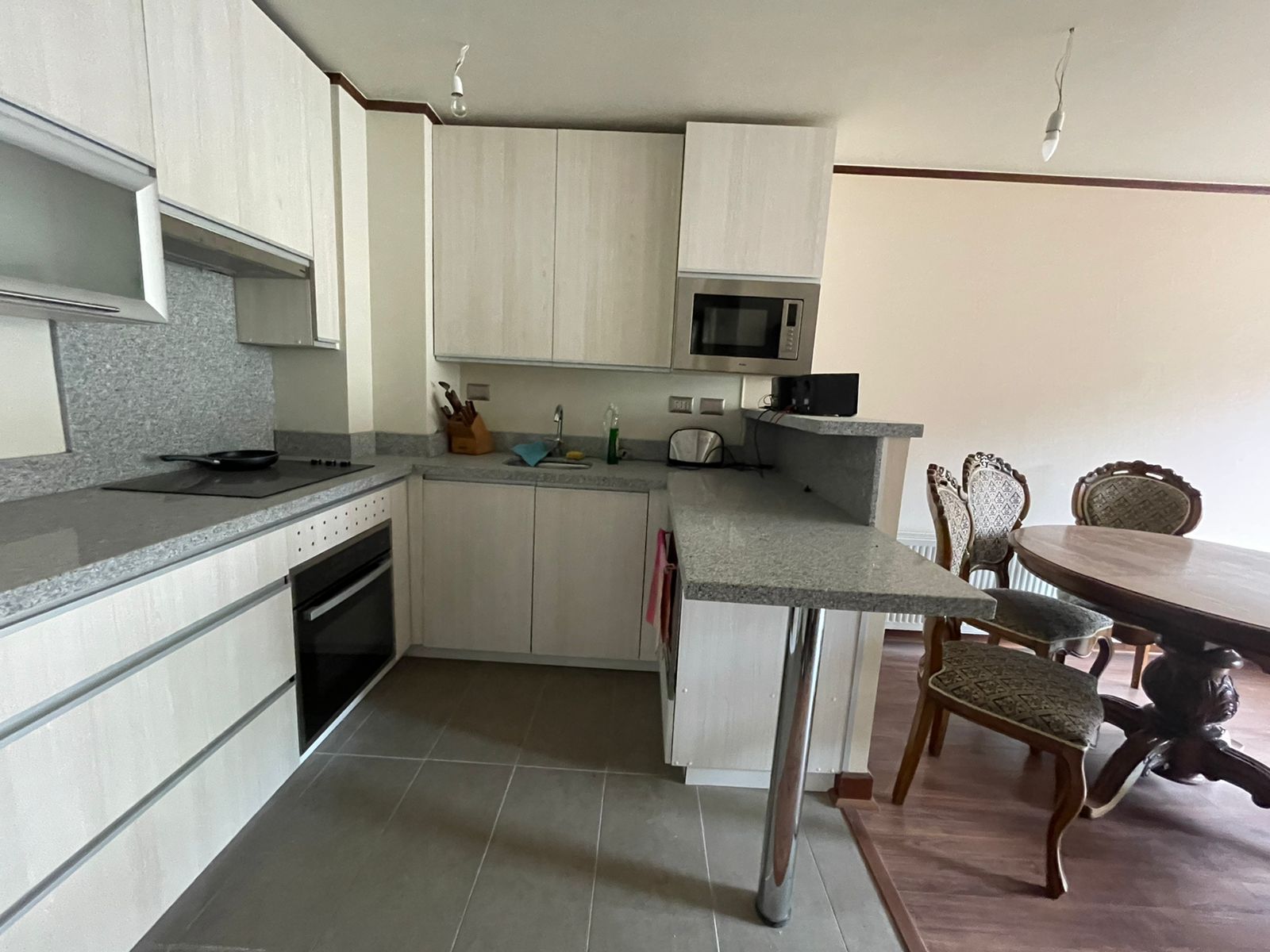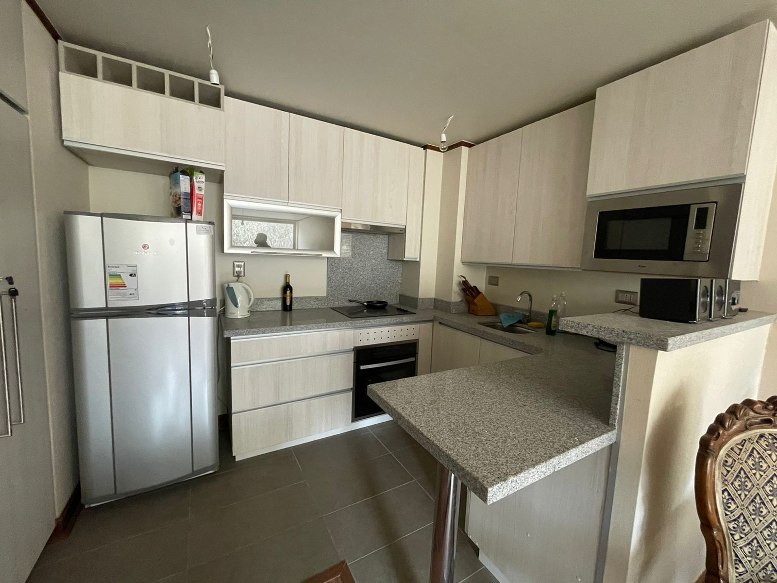 Cocina con encimera electrica , horno eléctrico, campana, lavavajilla, cubierta de granito