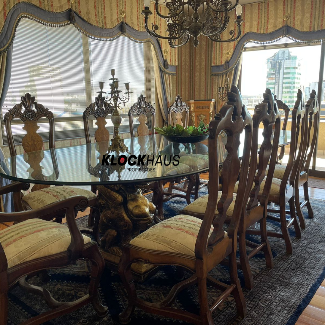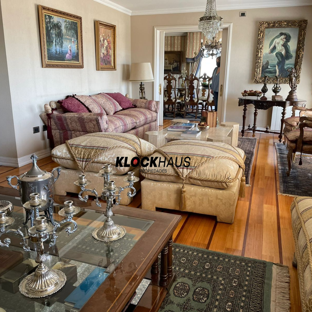Amplio y central departamento ubicado en el gran Concepción. Departamento cuenta con living comedor separado y cocina independiente completamente equipada con loggia y lavandería, además de amplia habitación de servicio con baño. A su vez, cuenta con cinco dormitorios, dos de ellos en suite y cinco baños, sala de estar, terraza, bodega y dos estacionamiento. Edificio con accesos controlados, 2 acensores y calefacción central.